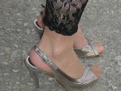 Lo que si tengo que decir esque mis sandalias son guapisimas y tal vez en la foto no se aprecian tanto pq no son plateadas son doradas, hacen visos y el color puede confundirse pero nada que ver con cualquier zapato que haya en blanco,vamos que no es lo mismo un bogavante que una langosta,o al menos para mi, pq entonces mi cazadora vaquera como dijo mi padre la misma la pude haber encontrado en el mercado,pero nada que ver.