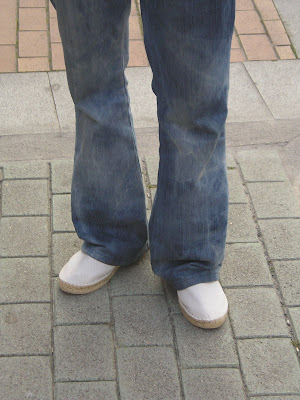 Lo siento pero el look del chico me parece totalmente desacertado. En primer lugar, me pregunto, ¿como se puede poner unas esparto (claramente veraniegas y evidentemente sin calcetines) y encima llevar tanta camisa? O las esparto están fuera de época, o lo está el resto. De todas formas,poner unas esparto con americana es una pallada, simplemente es incompatible. Y segundo, los jeans le van fatal, ese corte no se lleva nada y mejor no hablo del largo… (que cuesta 3 euros arreglar el bajo!!) Lo siento pero me parece un rotundo desastre.