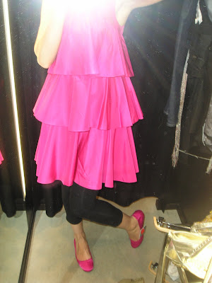 Hacía tiempo que me había probado el «ciberfamoso» vestido amarillo, personalmente no me convence. No sabía que hubiera una versión fucsia ¿vosotras? Aquí lo teneis con un look: «la bailarina de Agatha Ruiz de la Padra». No seais condescencientes que no me lo he comprado…
