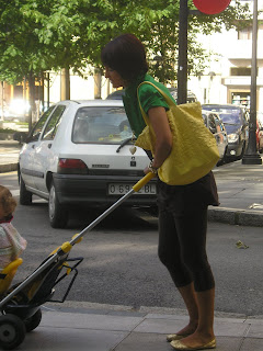 Al segundo podemos catalogarlo como sport chic ( intencionado o no, hasta el bolso combina con el manillar del triciclo…)