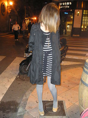 Me gusta el look y sobre todo la combinación medias zapatos.