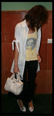 Son chulísimos todos los conjuntos que sacáis. Me gusta especialmente la camiseta negra del lazo. Zoe, ¿Llevas una media clarita (quizás gris) con el vestido negro y los pitis? Esto no me convence mucho pero creo que es una pelea propia particular. Adoro los zapatos de empeine alto. Lástima que ya no se lleven tanto.