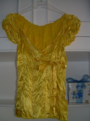 Otro de raso, pero esta vez liso y en tono ácido. Un color muy favorecedor para las que esteís muy morenitas (este año aún no lo he puesto) Tiene escote pronunciado, y una lazada bajo el pecho. La tela es arrugadita, y no necesita plancha, me lo compré el verano pasado en Potonovo.