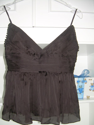 De gasa plisada, en color marron chocolate, es de Pedro del Hierro. En la foto parece muy ancho, pero es super ajustado. Me gustó mucho por el color y el plisado, pero es difícil de llevar porque no he encontrado un sujetador sin tirantes que no se vea ¿Sabeís de alguno?