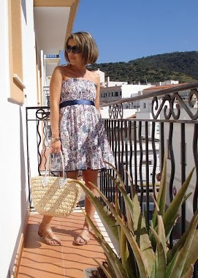 23- Vestido del mercadillo, capazo de una tienda de mi pueblo, sandalias de Bruno Premi