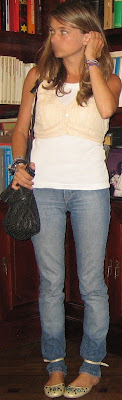 36.- Blusón en el mercadillo de Camdem Town (hace dos años), (pero este año había algo muy parecido en Bershka o Pinkie), vaqueros stradivarius, diadema HyM (año pasado), bolso en una tienda portugues ?¿? y zapatos stradivarius (hace 1 año).
