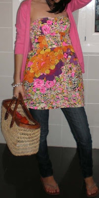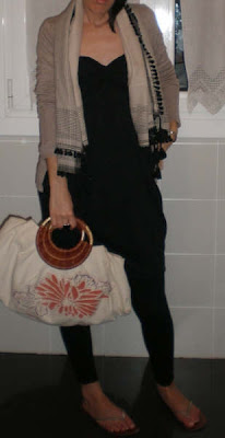 Vestido: H&M Trend. Pitillos, rebeca: Zara Chanclas: Oysho Capazo: Ibiza (mi madre lo compró hace años).
