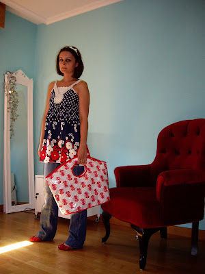 Foto 65: Vestido rojo de CUSTO. Zapatos rojos purpurina PULL&BEAR. Shopping bag «Le fabuleux Montmartre» con la imagen de Amélie (regalo de un amigo que lo compró en una pequeña tienda de La Coruña)