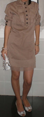 34.- Vestido Sfera. Bolso Blanco (año pasado). Zapatos stradivarius. Chaqueta en mano de Blanco (año pasado). Broche de la chaqueta, de una tienda en Palermo ?¿?.