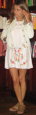 32:- Vestido Blanco. Bolso y diadema de HyM (del año pasado). Zapatos Stradivarius (del año pasado). Pulsera de Menganita.