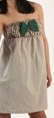 Tonos verdes y beiges se combinan en estos vestidos con un diseño muy favorecedor. Uno con escote palabra de honor y cuadros de Vichy. El otro , entalladito por arriba va ganando volumen hasta conseguir un efecto abullonado, nos gusta tambien la combinación de colores y el detalle del lazo en el tirante.