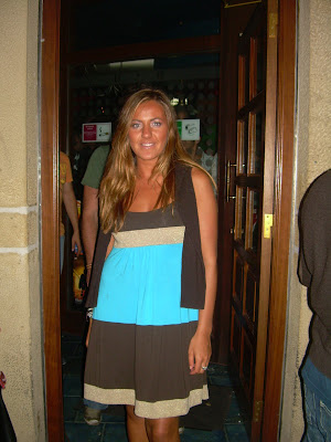 Yo que soy una pesada con el tema vestidos -simplemente me pierden- me llamó mucho la atención este por los colores: me encanta como queda el azul turquesa con marron. Tambien lleva lamé dorado que lo hace más original. Le pregunté de donde era y me comentó que había estado de vacaciones en Atenas y que se lo había comprado allí.