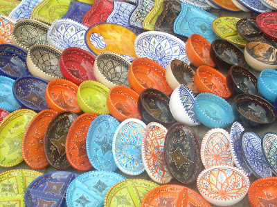 Platos , cuencos y bandejas de cerámica. Los vendían en todos los zocos y puestos por las calles.