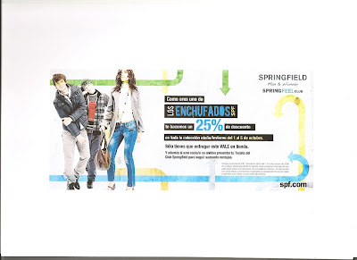 Hoy os contamos una promoción muy interesante de «Springfield» -ya sabeís que desde hace unos meses tambien hay ropa para nosotras- Pues se trata nada más y nada menos de un descuento del 25 % ¿Qué hay que hacer para obtener el descuento? Es muy sencillo solo teneís que imprimir este cupón y entregarlo a la hora de efectuar el pago en caja, es válido desde el día 1 al 5 de octubre. Si tenísis pensado ir de conmpras este fin de semana, no os olvideís de imprimir el cúpón por si veís algo que os guste: