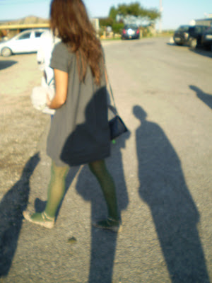 Me gusta el vestido gris y las bailarinas, que creo que tiene Miss M, pero las medias verdes me parecen poco favorecedoras.