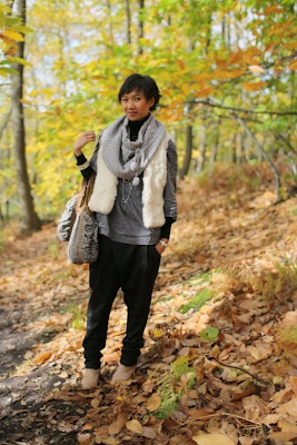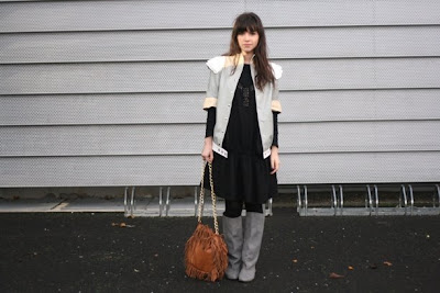 Del blog «Le monde de Tolyobanhbao» Hemos seleccionado estas dos imágenes, la primera para que podais ver que una prenda no tiene porqué tener un sólo uso. Una falda de punto nos puede servir como tal o hacer de minicapa con un sólo gesto.
