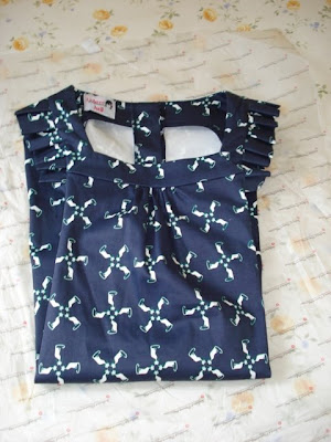 Y aquí tenemos a Raquel, le daba mucho corte salir y por eso posó de lado. Nos dijo que le ha gutado mucho, que es su talla, y que lo suele llevar con medias azul marino tupidas y sandalia de ante tipo peep toe verde -para que haga juego con los dibujos : Las tulitas-