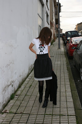 Guapisima! me encanta el conjunto, quizás lo que menos las botas pero la falda me tiene enamorada y la combinación con la camiseta estampada genial.