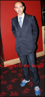 Las deportivas azules con el traje estropean el conjunto. Tienen un pase en ocasiones especiales en una feria de muestras pero tendrían que ser más discretitas.