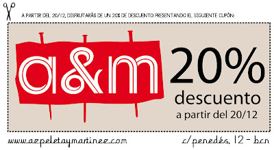 Tal vez a alguna le llegara por emial como a nosotras, imprimiendo este cupón recibís un 20% de descuentos en esta firma A&M tiene varias tiendas repartidas por Barcelona.