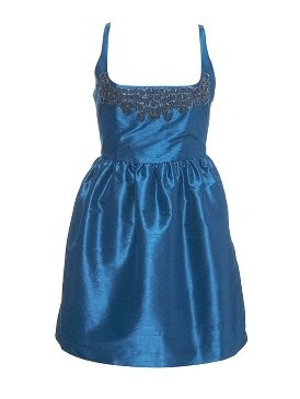 Dos vestidos brillantes , en raso y en seda salvaje.El gris es de cortefiel de su nueva línea «T» y cuesta 79 euros, con un bolerito tipo peluche y un bolso de mano..perfecto.O este azul de Top Shop combiandolo con negro .