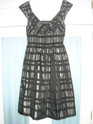 Otro vestido de raso, con motivos circulares. Es de hace dos inviernos, manga corta, corte imperio y con lazada bajo el pecho.Lo puse tanto que me cansé un poco de él.