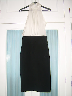 Vestido halter bicolor negro & blanco , parece un poco serio pero queda muy elegante y nada serio.Es de la temporada pasada, pero con el mismo patrón lo tienen estas navidades en marron y en verdes ( zara).Lo malo es que abrocha atrás y lleva 12 botones muy pequeños y al abrocharlo una se desespera un poco..