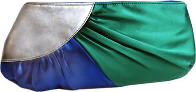 También hemos encontado este bolso que combina tres colores, que puede dar un look más moderno- menos clásico – y por ejemplo llevar el vestido, con el bolero plata, este bolso y sandalias verdes..