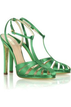 Yo me arriesgaría y me alejaría de lo seguro (plata y dorado) para irme a las sandalias verdes!!! sería un acierto total!!!!!!!