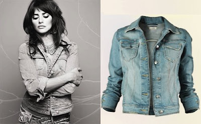 Y firmas como inditex o Mango tambien han sacado muchas prendas vaqueras para esta primavera -Creemos que fue Pepe Jeans de los primeros en incluirla en sus colecciones el pasado otoño- En la foto podemos ver a Penélope que como sabéis colabora como diseñadora con la firma Mango, luciendo una cazadora entallada de esta marca.