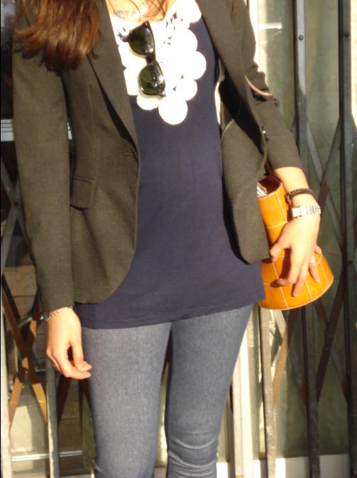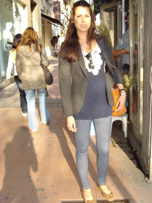 Me han gustado mucho las fotos de karine.le quedan muy bien los leggins vaqueros, me gustan muchísimo más que los de vinilo negros(ya era hora de cambiar..jj) le quedan muy bien con la blazier, que es preciosa y esa camiseta.