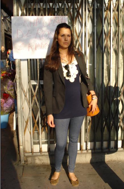 Que ilusión me ha hecho leer este post porque a Karine la ví yo el sábado por la tarde sobre las 18:30-19:00 en el mismo sito donde le habeis hecho la foto justo al salir del H&M de la C/ Goya, a que sí? y a quien hizo la foto tb te ví, entraste en H&M con la cámara de fotos en la mano (creo que era una Reflex Canon 450 D)y si no recuerdo mal ibas con una camiseta blanca con un estampo delante… QUE ILU!!! Que pena no haberme presentado, si llego a saber que eras de este blog QUE ME ENCANTA!!!