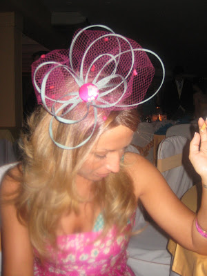 Vaya pues yo me quedo con los zapatos y el bolso! que son una autentica preciosidad, y es una pena que no se aprecien mas con el conjunto. Le pondría un mini vestido rosa-fucsia que con el tocado iria a las mil maravillas, y a enseñar piernas y moreno.