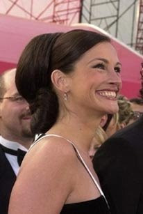 Un peinado mítico de Julia Roberts. Con todo el pelo hacia atrás .. Nos parece muy favorecedor para todo tipo de cabello, sobre todo si es grueso, bien alisado y después hacerle el recogido.