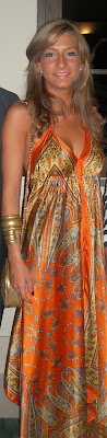 me encanta el vestido naranja, le da un toque muy veraniego y el estampado es precioso! lástima que yo no pueda llebar vestidos largos por mi altura u.u si no esta claro que optaría por uno muy similar^^