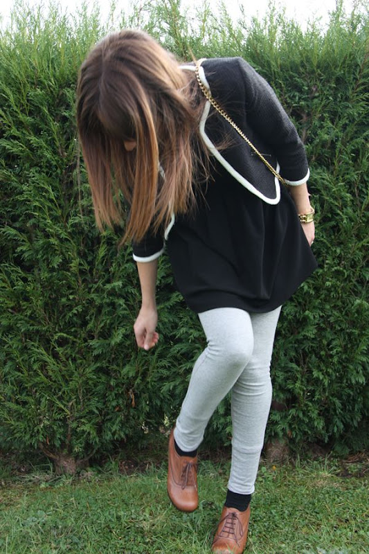 En cuanto a los calcetines y la combinación de color…para mi los calcetines son un artículo mas del que tirar (ya sabéis que esta temporada me ha dado por jugar con ellos y sacarlos a la vista) decidí negro por hacer el juego de color con la parte de arriba… el tema de los colores es muy personal yo tengo alergia a algunos colores: el verde ventanas asturianas como digo yo jajaja por ejemplo y no me va mucho mezclar azul marino y negro por regla general…sin embargo el marrón y negro no me da ningún problema (teniendo en cuenta la intensidad y grado de tonalidad claro)en moda como en decoración considero que siguiendo ciertas pautas hay muchas combinaciones a nuestra disposición siempre y cuando sean de nuestro gusto, por eso os enseño este look que suelo llevar, como siempre para dar opciones respetando a las que os espante esa combinación y alentando a quien no a que se atreva a expresarse:)