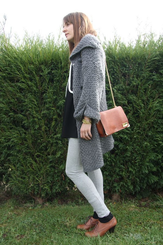 Vuelta a la normalidad y por desgracia al frío invierno (a las que me preguntabáis por el viaje, el destino elegido fue Madeira Este año me ha dado por el punto como método para combatirlo y vuelta a las capas. Gris marrón y negro es el juego de color de los zapatos-bolso, pantalón-maxi chaqueta de punto, mini vestido y chaqueta «chanelesca» Los pantalones y la maxi chaqueta son de Zara, la chaqueta chanelesca de H&M, los zapatos de Ulanka (creo) comódísimos y muy versátiles… El resto ya lo conóceis.
