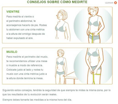 Otra cosa que también nos dió buenas vibraciones es que una vez que estás registrada puedes anotar en tu espacio personal las medidas de tus muslos y abdomen de manera que según vaya avanzando el tratamiento obtenemos una gráfica de la evolución conseguida (hasta te explican como medirte para que los resultados de la evolución sean reales)