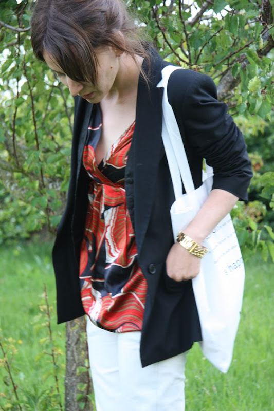 Pantalón Pull and bear s/s09, jaulas blanco s/s09, blazer Zara s/s09, vestido Massimo Dutti s/s 08… Como veís un look completito de ropa de otras temporadas.