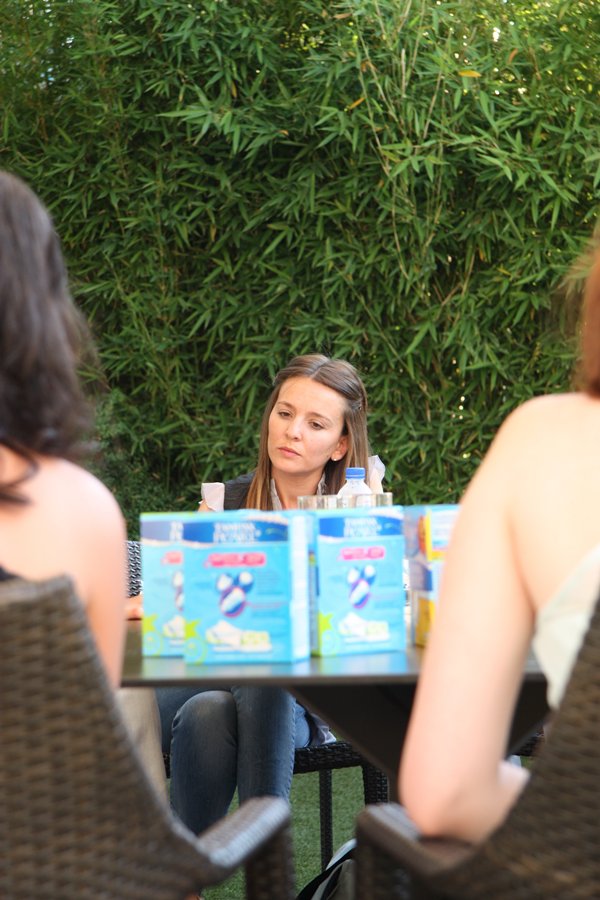 En cuanto al resto de cosas que decís yo he transcrito las respuestas que ha dado Patricia, tengo claro que estaba trabajando, es la imagen de Tampax y esta marca quería involucrar a bloggers. No era una reunión de amigas (quizás me dió la sensación de que no tenía muy claro que era o quien eramos, no eramos prensa convencional, tal vez eramos fans? pq que es eso de bloggers? pero eso ya es una opinión personal…en todo momento estuvo en su papel de chica simpática y ocurrente que lo hace muy bien, sonrió, contó, respondió, no tuvo problema alguno en hacer tantas fotos como se pidieron incluso repartió besos, fue cercana y amable como dice Paula… Que me sorprendió su respuesta respecto a no encontrar a ninguna española con estilo que admirar? claro!! que no entendí lo de que en Estados unidos están mas a la ultima y por eso prefiere a las americanas pues tampoco.. porque el estilo y las modas tienen poco que ver a mi juicio…pero está claro que las opiniones son todas respetables.