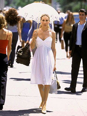 Otros looks de Carrie que nos gustan por lo actuales que son, como este vestido blanco veraniego,