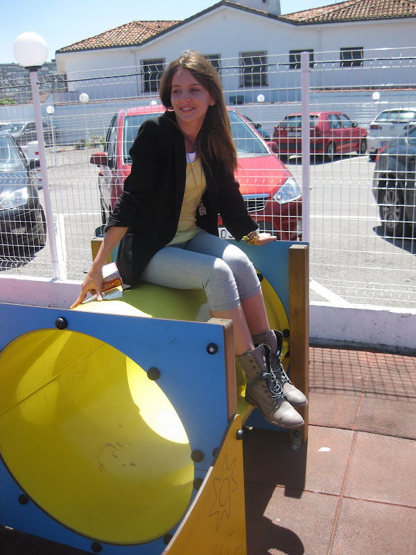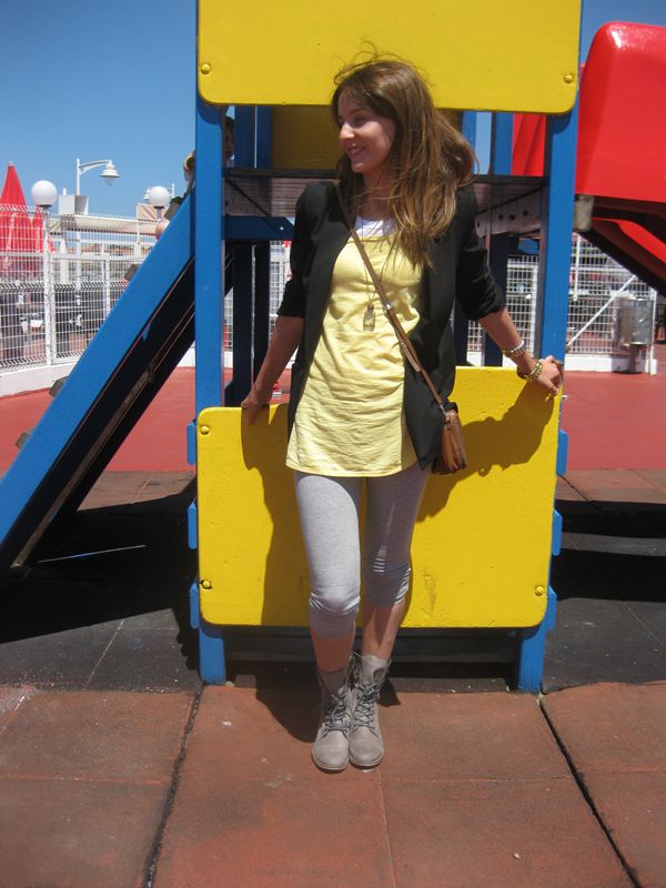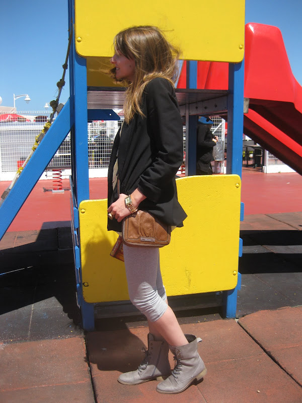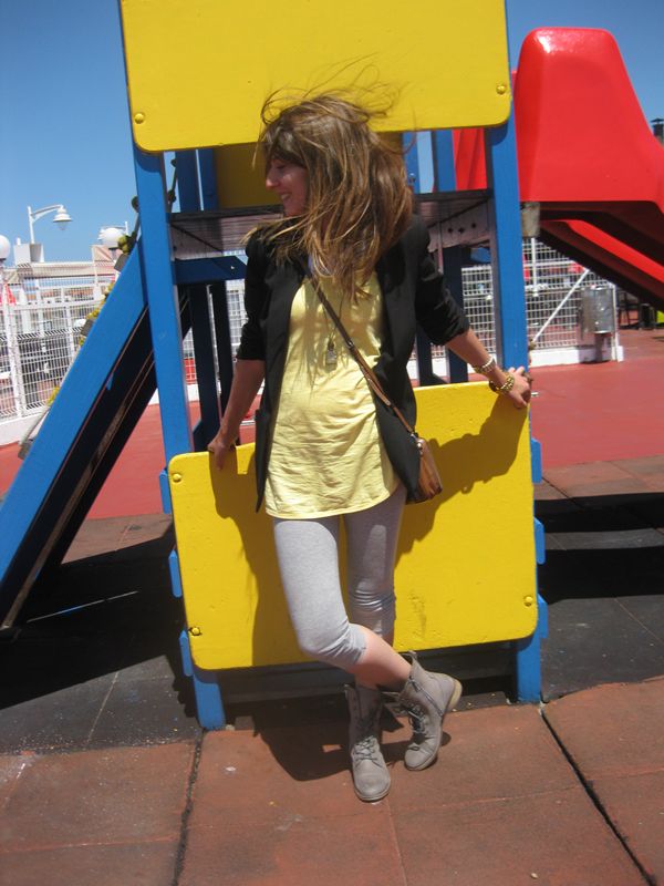 Pues la verdad es que yo no me vestiría así ni para ir al gym…esas mallas grises con blazer glups!. Pero todo hay que decirlo tú estás mona con lo que te pongas y las botas ya te lo dije… me chiflan! besitos