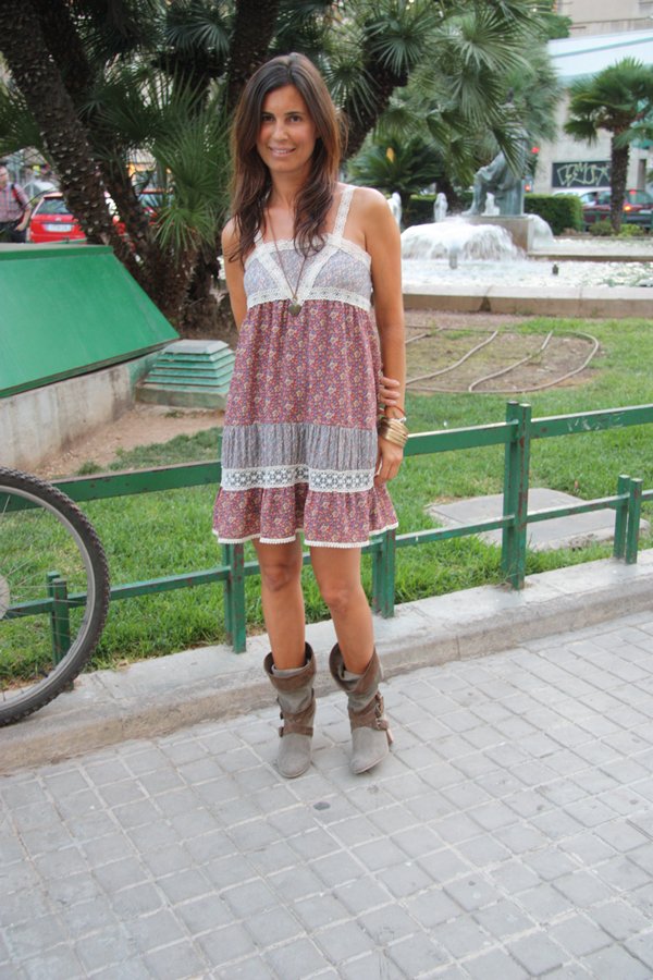 El vestido es ideal y le sienta a la chica aún mejor, pero las botas aquí me darían una calor (35º)… bsos!