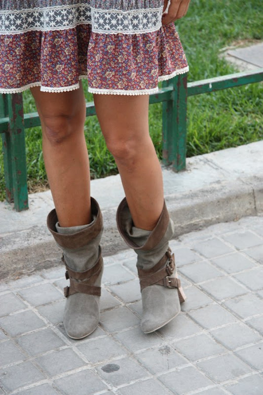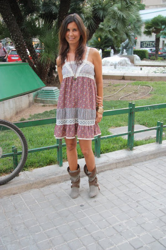 Me gusta la mezcla de ese vestido con las botas, aunque estos días en Barcelona no sé si me atrevería a llevarlas con este calor!!