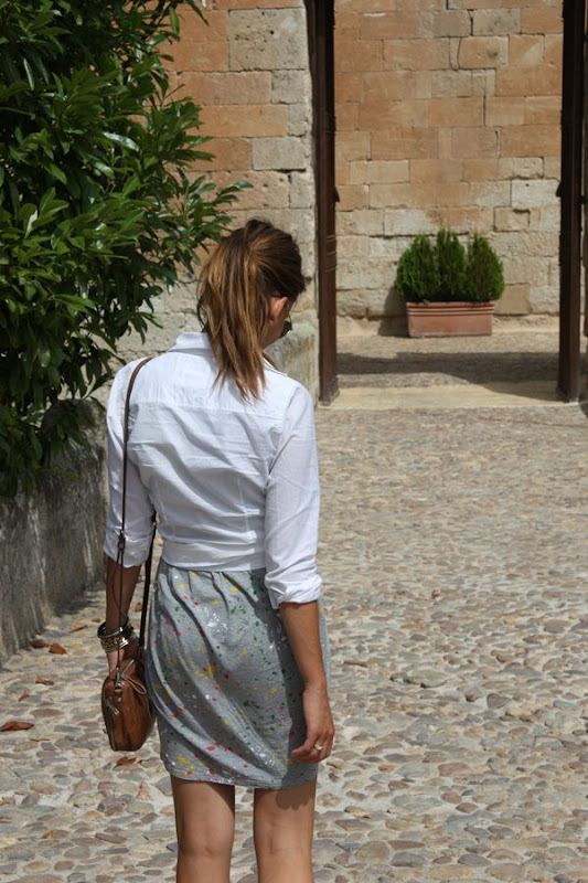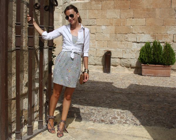 Me gusta mucho la combinación del vestido con la camisa blanca anudada. Muy estiloso ^^
