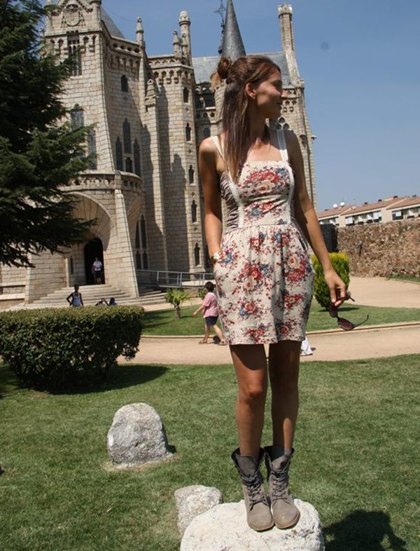 El castillo parece de cuento, y el vestido es una monada. ¿No te dan calor las botas? Yo no podría con estos calores! Saludos