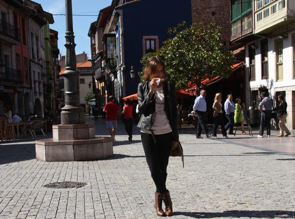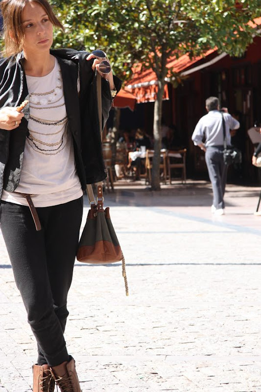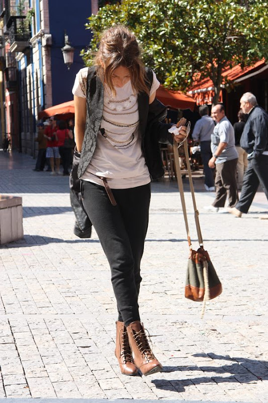 Cazadora Mango (Old), Camiseta y bolso H&M (S/S10), pantalón y botas Zara(O/W10), Chaleco Vintage