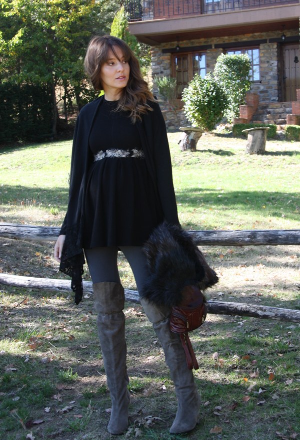 Este minivestido ya os lo enseñé hace tiempo a día de hoy mas que un minivestido es una maxicamiseta para combinar con jeggings, en este caso grises. Inevitablemente la barriguilla hace que el largo de los vestidos se acorten.