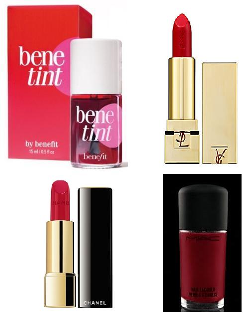 Y, finalmente, también podemos optar por alegrar nuestro rostro con tonos rojos, con el colorete líquido de Benefit Cosmetics (20€), dando un toque de rojo a neustra uñas con la laca de MAC (12,50€) o destacando nuestra sonrisa con las barras de labios de Chanel (29,50€) o YSL (22€).