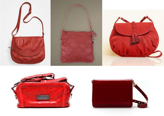 Otra opción, con muchas variantes disponibles (como veréis hay de todos los estilos y en diversos tonos), es llevar un bolso rojo como complemento.